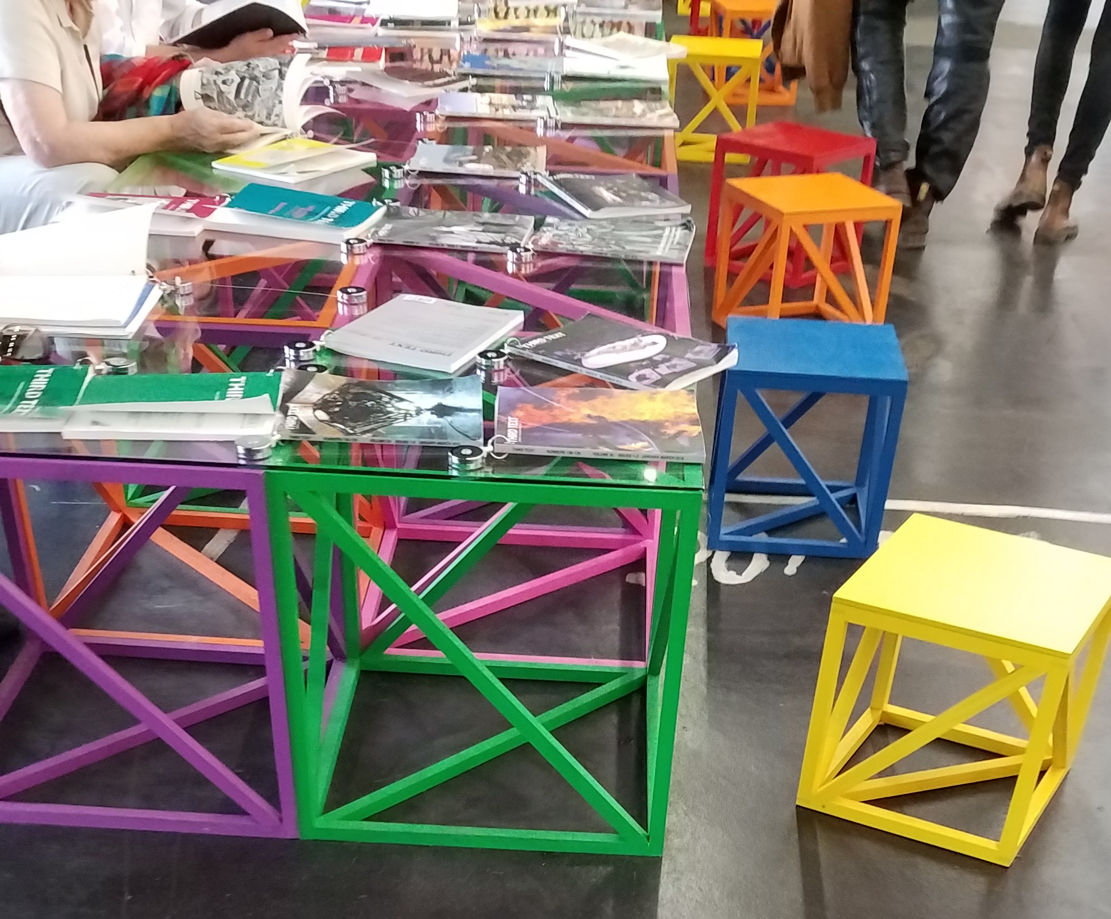 Another relational object found at Documenta was “Zero to Infinity” by Rasheed Araeen, that was seen in the Pavilion of the Commons at the Venice Biennale. This time they had been transformed into a table with books for the audience to read. This was very interesting to me. Unless one recognized the cubes shown below, to be a work by Rasheed Araeen, they would not necessarily know to look for the didactic or that they are interacting with an artwork. The use of this object as a table is a clever way to break down the normal barriers between art and audience.